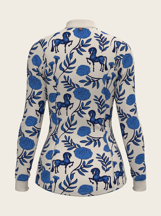 Espoir Equestrian Peony in Blue Quarter Zip Shirt